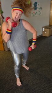 So I teach a seven minute weight lifting class over teams like this. So you can just pop on seven minutes better than zero minutes gets you moving. We record it so night shift can do it later if they want. And then we’ve expanded that. So I work with our spiritual care department as well as our healing arts department, which also great departments to have. So we do some meditation, we do some desk mobility and stretching work. So it’s a real mix of activities.
